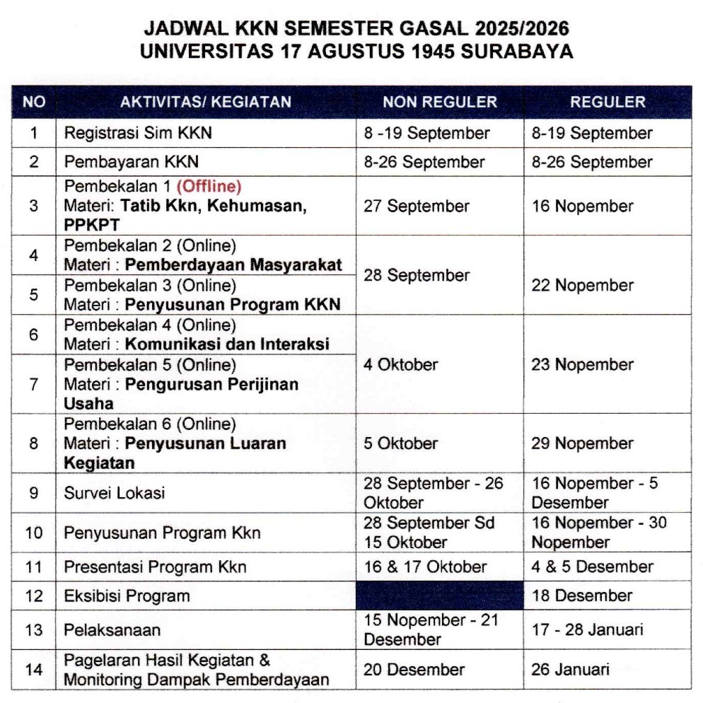 Jadual KKN Tahun ajaran 2025/2026