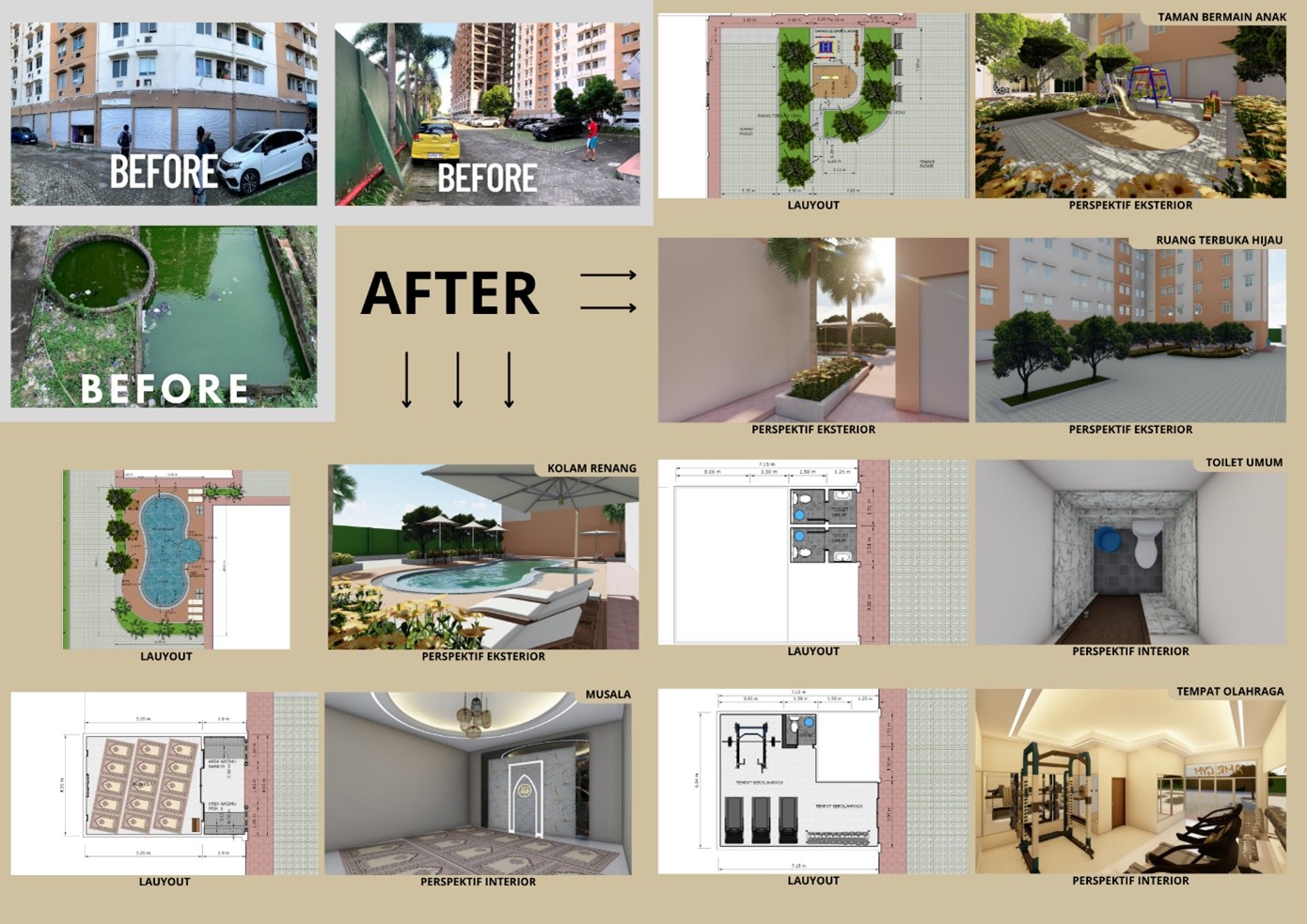 DESAIN USULAN RENOVASI FASILITAS UMUM YANG ADA DI MENARA RUNGKUT SURABAYA, MELIPUTI : TOILET UMUM, TEMPAT OLAHRAGA, KOLAM RENANG, MUSALA, TAMAN BERMAI