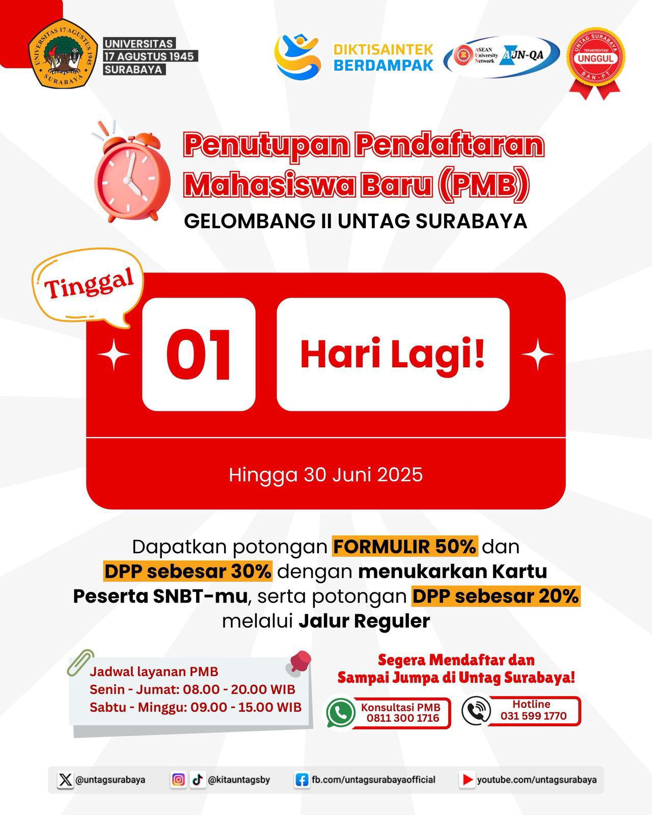Penutupan PMB UNTAG Surabaya Gelombang 2 Tinggal 1 Hari Lagi