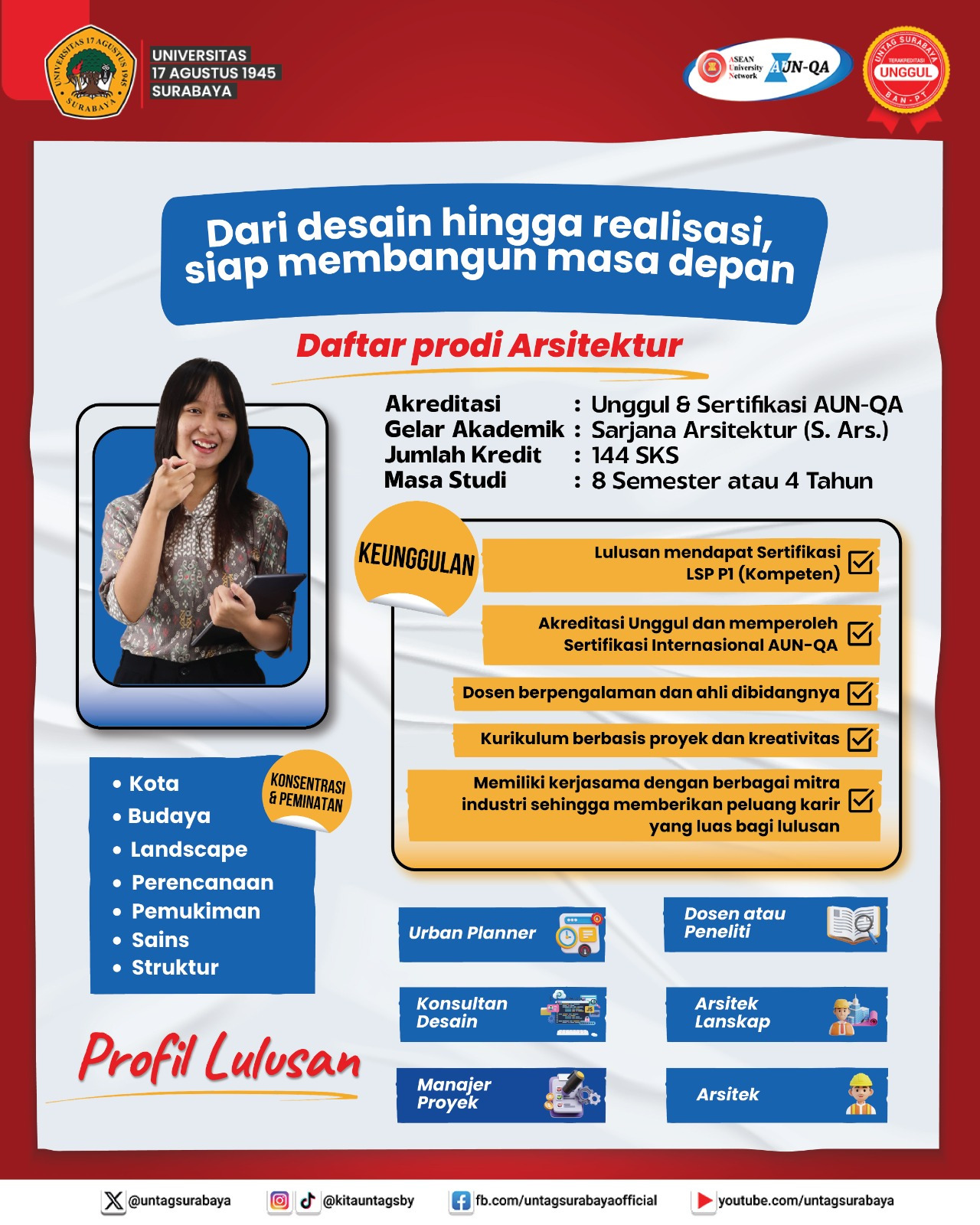 Ayo Calon Mahasiswa, segera bergabung di Program Studi ARSITEKTUR - UNTAG Surabaya