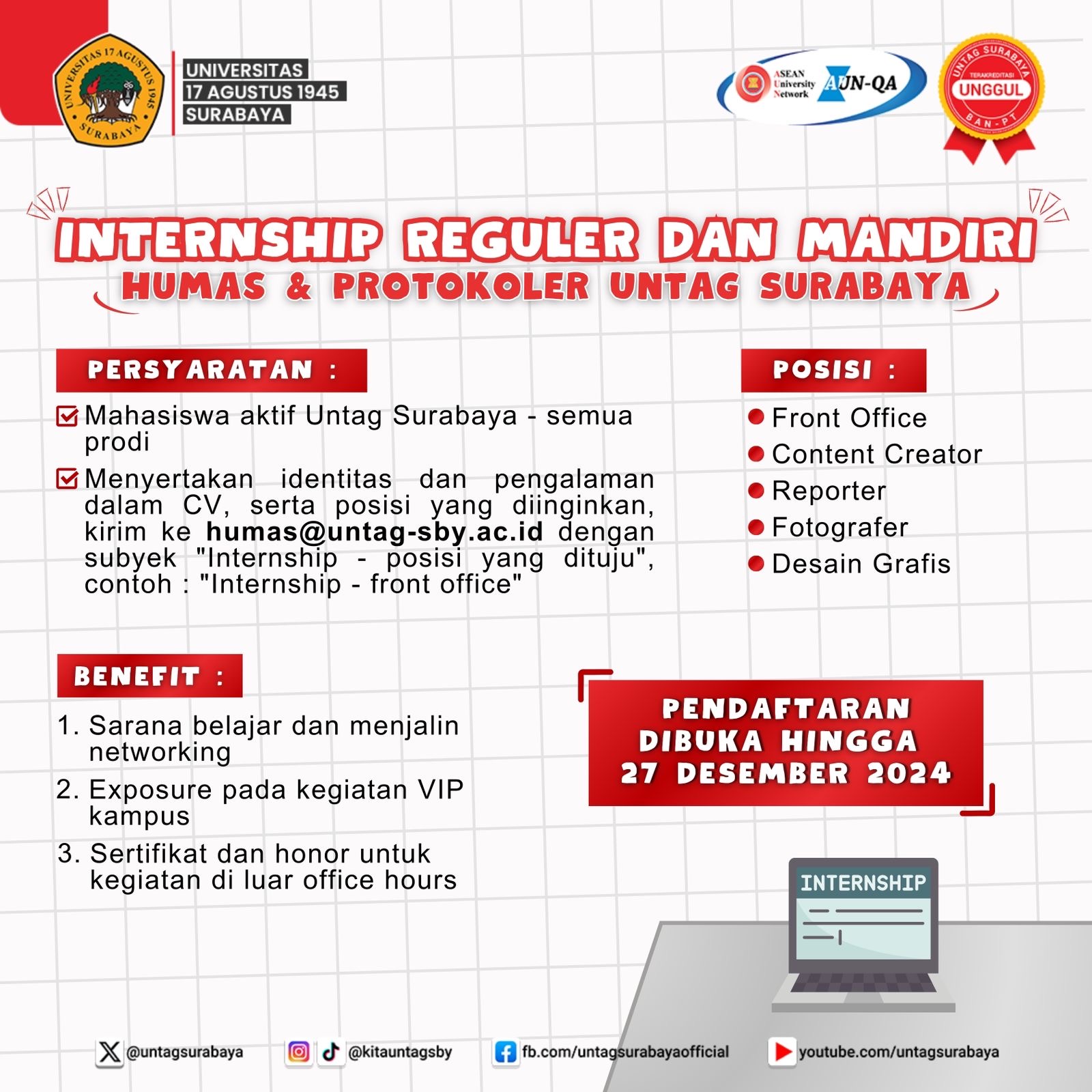 Ingin Kuliah sambil kerja? Magang aja di Untag Surabaya